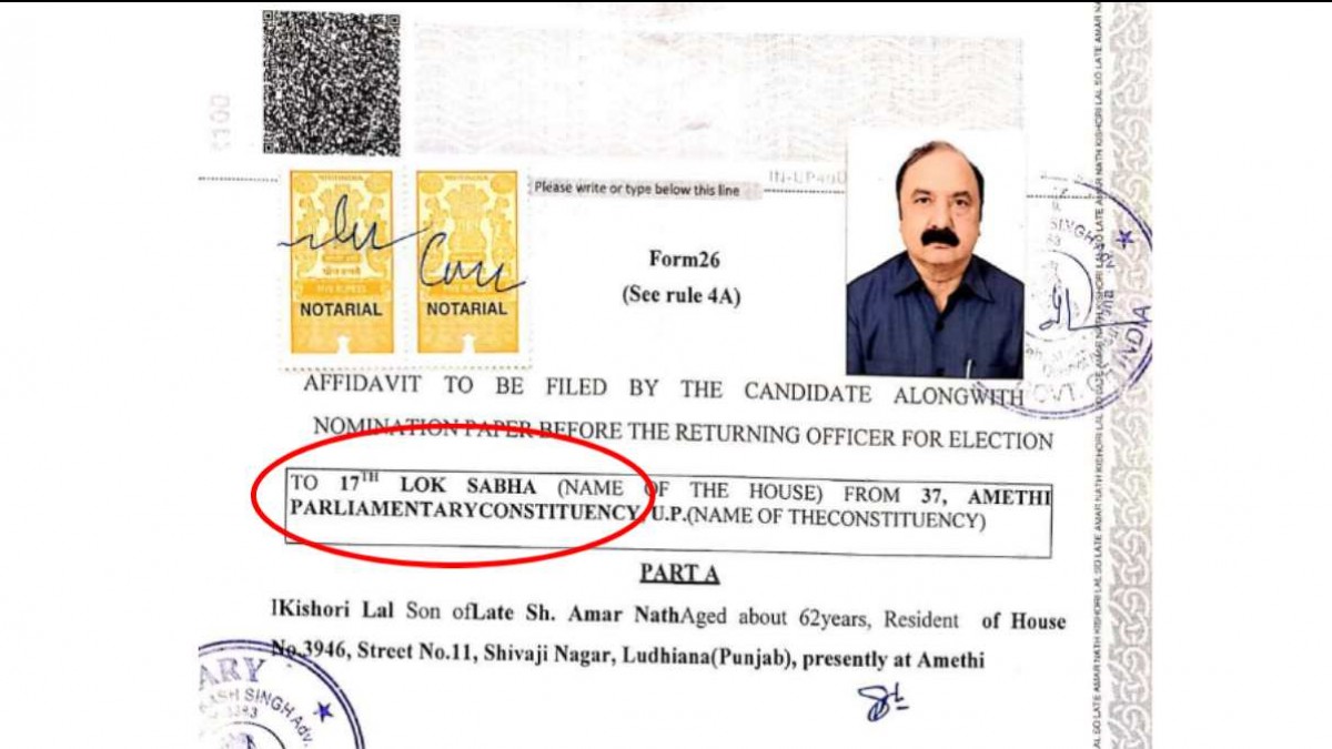 Amethi Lok Sabha Election 2024: उत्तर प्रदेश की अमेठी लोकसभा सीट से चुनाव जीतने वाले कांग्रेस सांसद किशोरी लाल शर्मा के नॉमिनेशन फॉर्म के एफिडेविट में एक बड़ी गलती हुई है। यह सोशल मीडिया पर वायरल है।