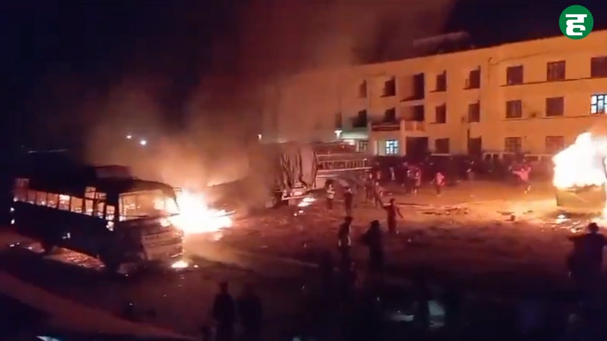 पुलिसकर्मी की बहाली की मांग को लेकर गुरुवार देर रात करीब 400 लोगों की भीड़ ने पुलिस अधीक्षक के कार्यालय को घेर लिया। प्रदर्शनकारियों ने एसपी कार्यालय के बाहर एक बस और अन्य जगहों में आग लगा दी। इस दौरान भारतीय झंडे को बिल्डिंग से उतारते हुए एक वीडियो सामने आया है। भीड़ के हिंसक होने पर प्रदर्शनकारियों को तितर-बितर करने के लिए सुरक्षाबलों ने आंसू गैस के गोले दागे। जिसमें कई प्रदर्शनकारी घायल हो गए। हिंसा को देखते हुए जिले में मोबाइल इंटरनेट बंद कर दिया गया है।