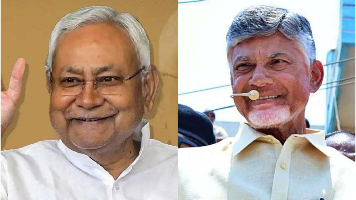 King Makers Nitish Kumar-Chandrababu Naidu: लोकसभा चुनाव की तस्वीर कमोबेश साफ हो चुकी है। भाजपा की अगुवाई वाले गठबंधन NDA बहुमत पार है। लेकिन कांग्रेस की अगुवाई वाले गठबंधन INDIA ने भी कमाल कर दिया है। ऐसी स्थिति में बिहार के सीएम नीतीश कुमार और आंध्र प्रदेश के पूर्व सीएम चंद्रबाबू नायडू को किंगमेकर की भूमिका में माना जा रहा है। राजनीतिक हलकों में चर्चा है कि नीतीश की जनता दल यूनाइटेड (JDU) और चंद्रबाबू नायडू की तेलुगु देशम पार्टी (TDP) नई सरकार के गठन में महत्वपूर्ण भूमिका निभा सकती हैं।