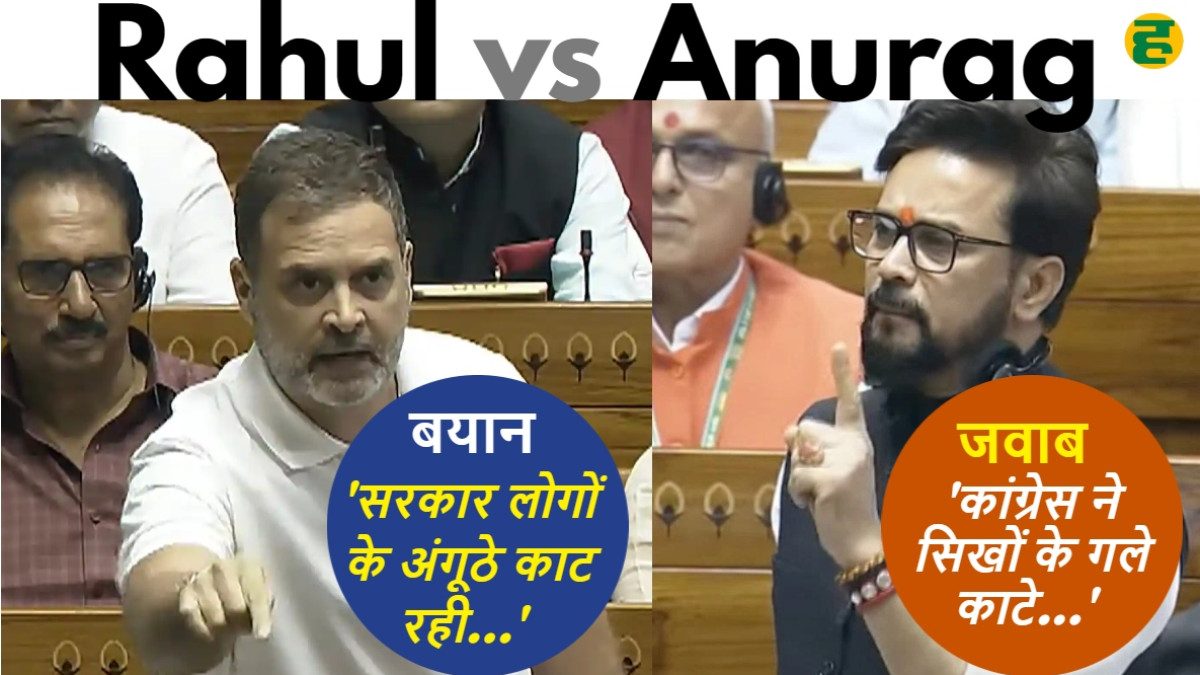 संसद सत्र के दौरान शनिवार को राहुल गांधी और अनुराग ठाकुर के बीच तीखी नोंक-झोंक हुई। राहुल ने केंद्र सरकार पर गरीबों और युवाओं का 'अंगूठा काटने' का आरोप लगाया। इस पर अनुराग ठाकुर ने पलटवार करते हुए कांग्रेस ने तो सिखों के गले काटे।