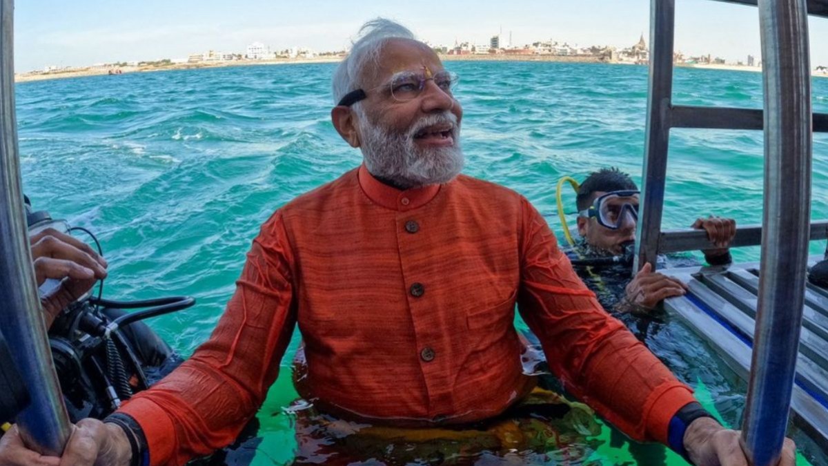 PM Modi Dwarka Scooba Diving: प्रधानमंत्री नरेंद्र मोदी रविवार को गुजरात के द्वारका मंदिर पहुंचे। यहां प्रधानमंत्री नरेंद्र मोदी ने देश के सबसे लंबे केबल ब्रिज का उद्घाटन किया। इसके बाद वह समुद्र में डूबी द्वारका मंदिर तक स्कूबा ड्राइविंग करते हुए पहुंचे। प्रधानमंत्री मोदी ने कहा कि यह एक दिव्य अनुभव रहा। भगवान श्रीकृण हम सभी को आर्शीवाद दें।