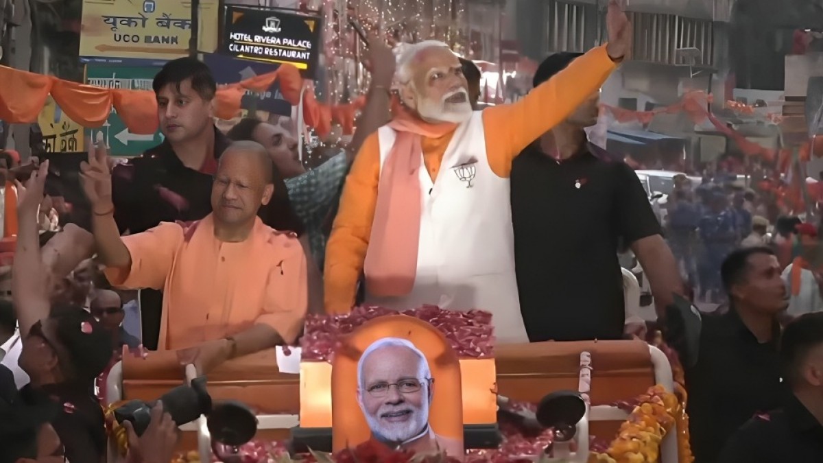 #WATCH | Uttar Pradesh: Prime Minister Narendra Modi along with CM Yogi Adiyanath hold a roadshow in Varanasi. #LokSabaElections2024 pic.twitter.com/nngp6CquYl