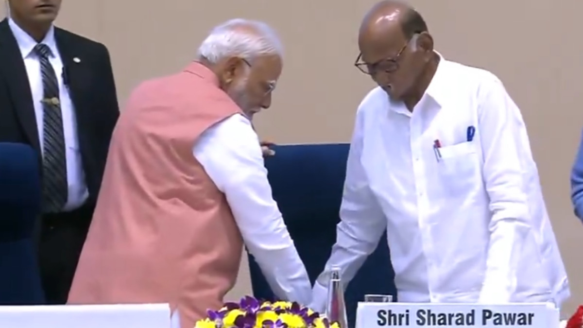 कार्यक्रम के दौरान पीएम मोदी और शरद पवार आपस में स्नेहपूर्ण बातचीत करते हुए भी नजर आए। सोशल मीडिया पर यह वीडियो तेजी से वायरल हो रहा है और लोग पीएम मोदी की बड़प्पन भरी इस विनम्रता की सराहना कर रहे हैं।