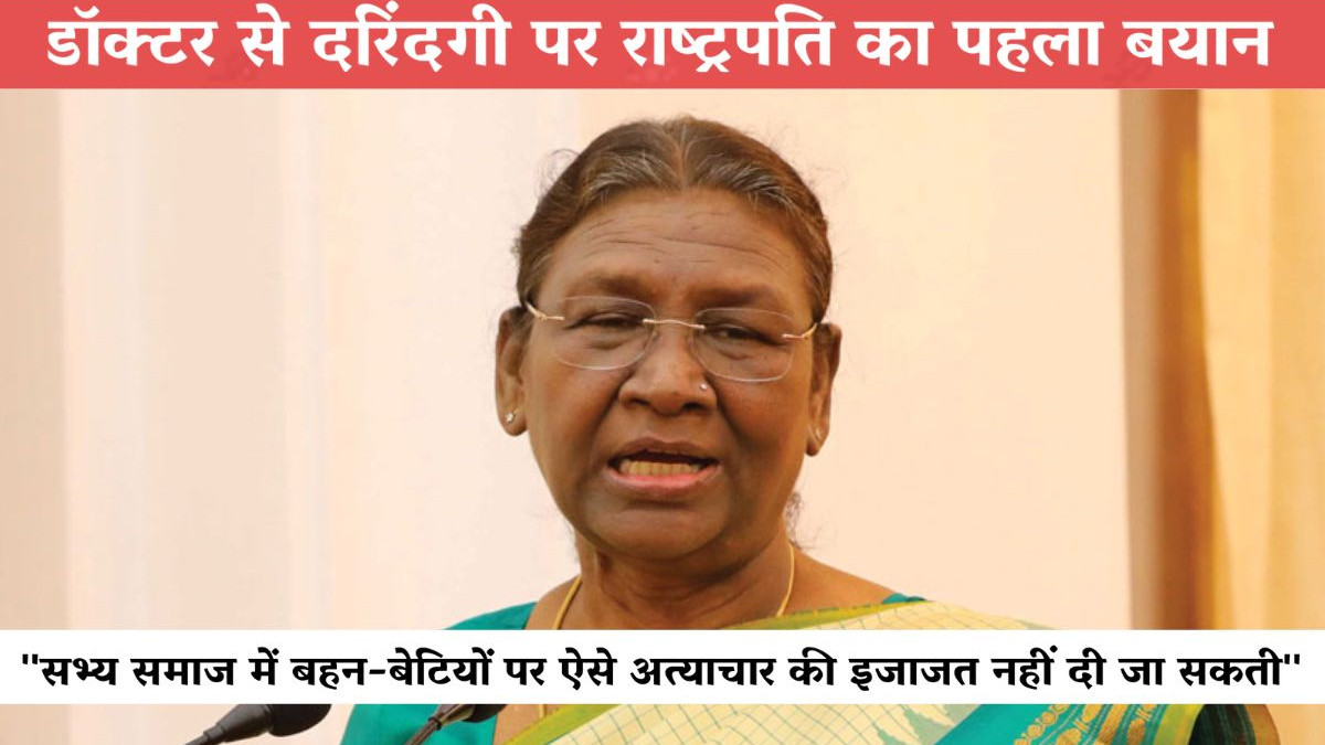 राष्ट्रपति मूर्मू ने कहा कि किसी भी सभ्य समाज में बहन-बेटियों पर ऐसे अत्याचार की इजाजत नहीं दी जा सकती है, अब बहुत हो गया। राष्ट्रपति मुर्मू ने कोलकाता में ट्रेनी डॉक्टर के साथ दुष्कर्म और हत्या के मामले में पूछे जाने पर कहा कि मैं निराश और भयभीत हूं। एक ओर जहां स्टूडेंट्स और डॉक्टर कोलकाता में विरोध प्रदर्शन कर रहे थे, वहीं अपराधी दूसरी जगहों पर घूम रहे थे।'