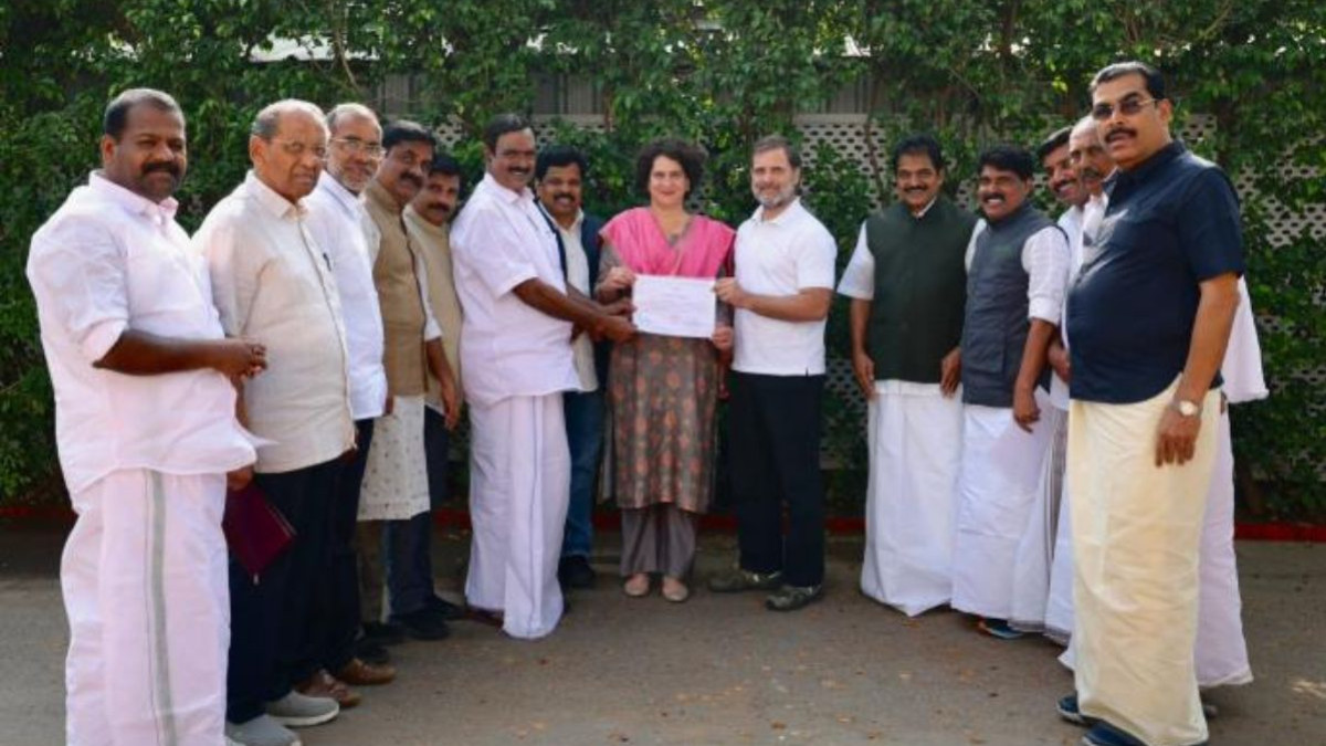 Leaders from Wayanad presented the election certificate of the Wayanad parliamentary by-election to Congress General Secretary Smt. @priyankagandhi ji in the presence of Leader of Opposition Shri @RahulGandhi.