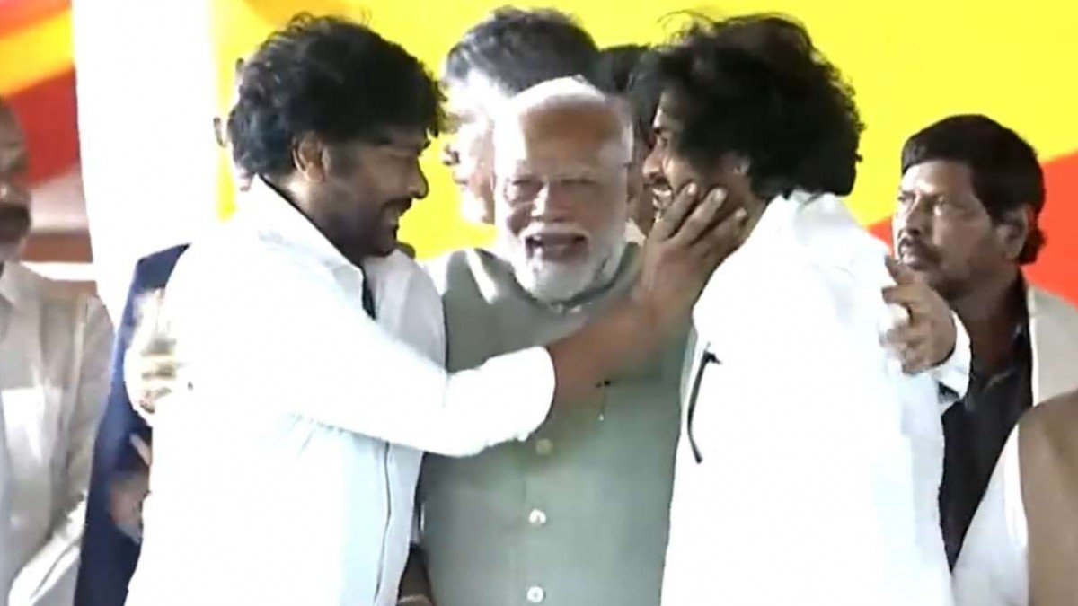 पीएम मोदी ने चिरंजीवी और पवन को गले लगाया