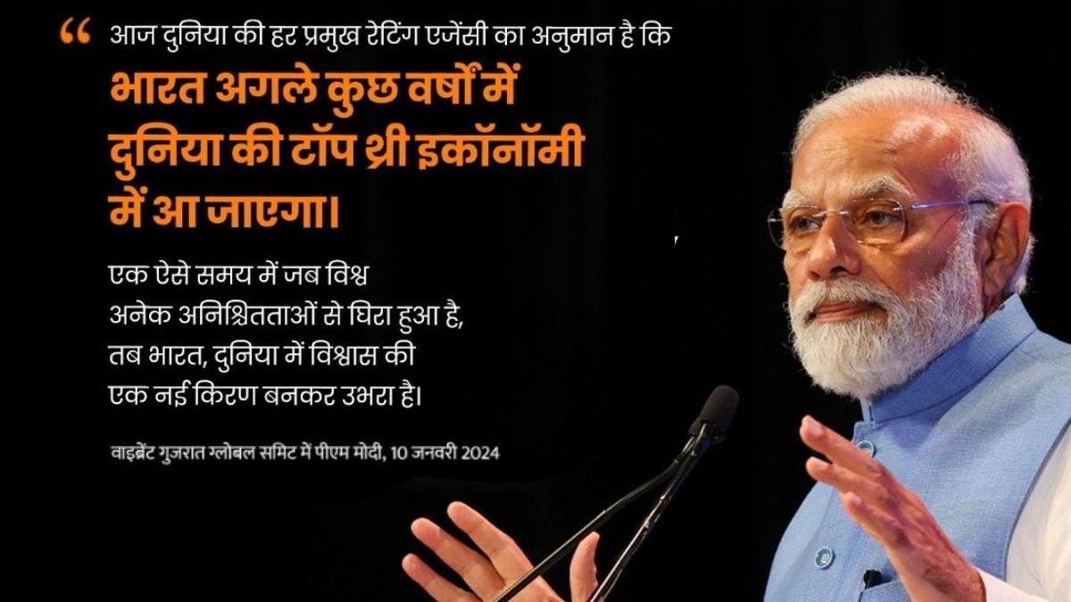 प्रधानमंत्री मोदी ने कहा-हम सभी वैश्विक परिस्थितियों के बारे में जानते हैं। ऐसे समय में भी भारतीय अर्थव्यवस्था में तेजी आई है। इसके पीछे एक बड़ा कारण यह है कि बीते कुछ समय में हमने ढांचगत सुधारों पर ध्यान दिया है। बीते 10 सालों में हमने कई सुधार किए हैं। अर्थव्यवस्था की क्षमता, योग्यता और प्रतिस्पर्धा को बढ़ाया है। आज भारत दुनिया की पांचवी सबसे बड़ी अर्थव्यवस्था है। 10 साल पहले भारत 11 वें नंबर पर था। मौजूदा समय में सभी प्रमुख एजेंसियां अनुमान लगा रही हैं कि आने वाले समय में भारत दुनिया की तीन सबसे बड़ी अर्थव्यवस्था में शामिल होगा। दुनिया अपना विश्लेषण करती रहती है लेकिन मेरी गारंटी है कि ऐसा ही होगा।