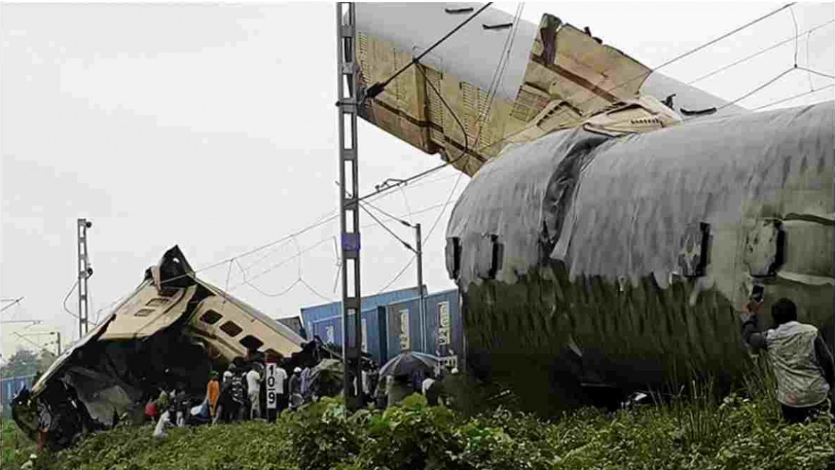 मालगाड़ी की टक्कर के बाद कंचनजंगा एक्सप्रेस के कई डिब्बे पटरी से उतर गए, लेकिन दो कोच चकनाचूर हो गए। एक डिब्बा हवा में लटक गया।