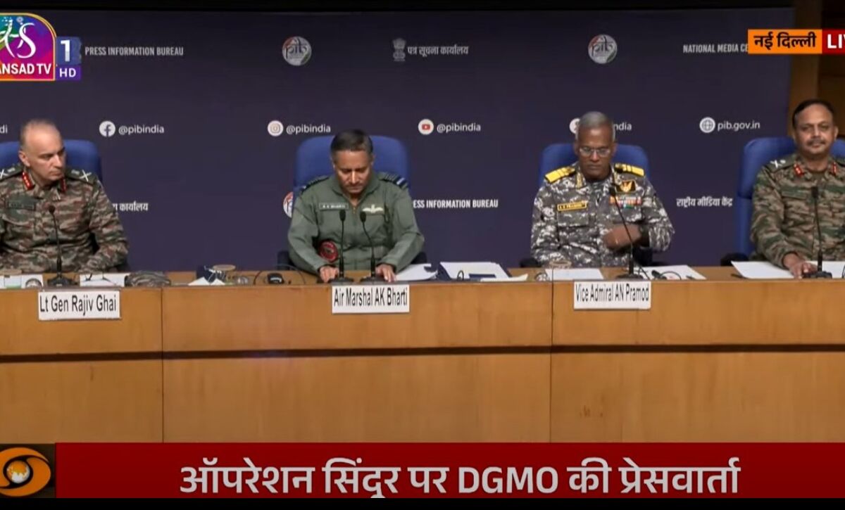 DGMO PC Live: भारत-पाकिस्तान के बीच पिछले कई दिन से जो तनाव बना हुआ था, अब उसमें अब शांति है। दोनों देशों की सीमाओं पर शांति का माहौल है। रविवार रात बॉर्डर पर कोई फायरिंग नहीं हुई। यह बात सोमवार (12 मई) को ऑपरेशन सिंदूर पर एक उच्चस्तरीय प्रेस ब्रीफिंग के दौरान शीर्ष रक्षा अधिकारियों ने कही।