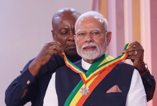 PM मोदी ने 'X' पर लिखा-मैं घाना के लोगों और सरकार को मुझे 'ऑफिसर ऑफ द ऑर्डर ऑफ द स्टार ऑफ घाना' से सम्मानित करने के लिए धन्यवाद देता हूं। यह सम्मान हमारे युवाओं के उज्ज्वल भविष्य, उनकी आकांक्षाओं, हमारी समृद्ध सांस्कृतिक विविधता और भारत और घाना के बीच ऐतिहासिक संबंधों को समर्पित है।