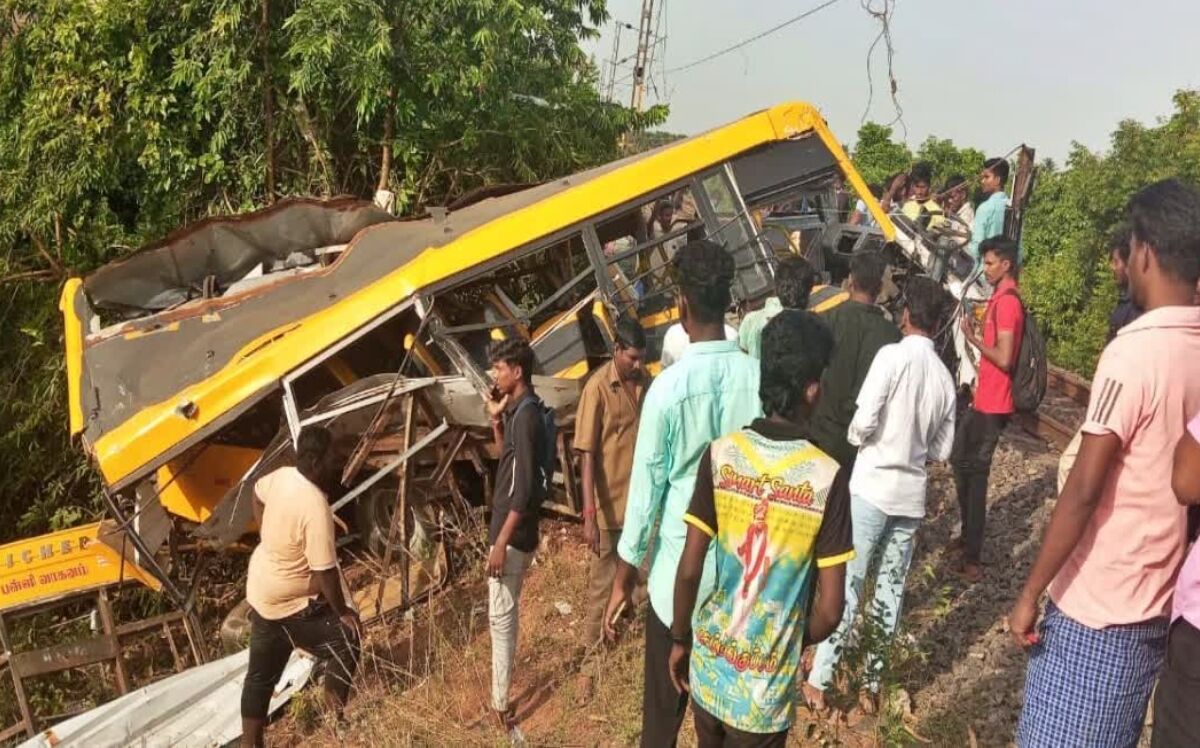 कडलूर में भीषण हादसा: स्कूल वैन को ट्रेन ने मारी टक्कर