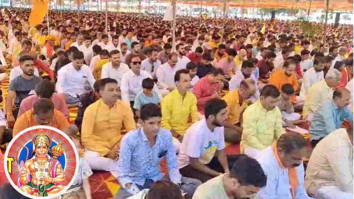 रतलाम के नेहरू स्टेडियम में हनुमान जयंती पर 11 हजार श्रद्धालुओं ने एक साथ बैठकर हनुमान चालीसा के 51 हजार पाठ किए। इस अनुष्ठान में पुरुषों ने साथ महिला और बच्चों ने भी सहभागिता निभाई। pic.twitter.com/hVwKR5yqMt