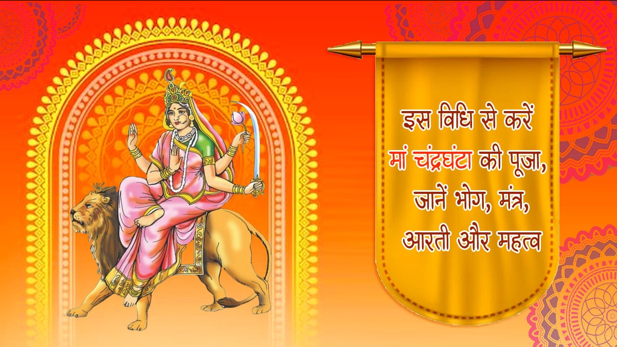 नवरात्रि के तीसरे दिन माता चंद्रघंटा की पूजा बड़े ही विधि-विधान से किया जाता है। इस दिन विशेष प्रकार के भोग भी अर्पित किए जाते हैं। तो आज इस खबर में जानेंगे कि मां चंद्रघंटा की पूजा कैसे करें साथ ही भोग क्या-क्या अर्पित करें, इस दिन का विशेष लाभ क्या है और पूजा विधि उपाय व मंत्र के बारे में जानेंगे।