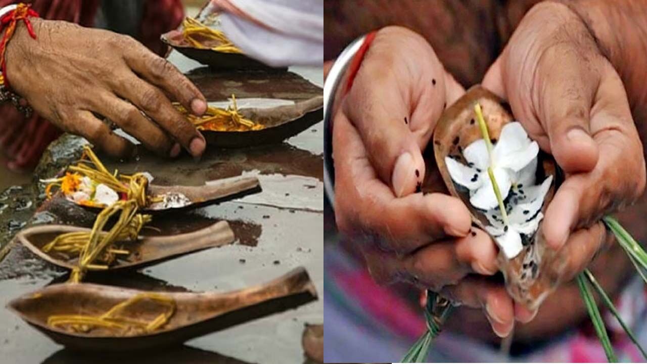 पितृ पक्ष में श्राद्ध कर्म और तर्पण करते हुए