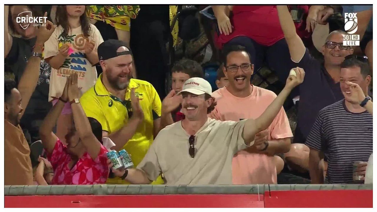 जैसे ही इस दर्शक ने ये कैच लपका, उसके आस-पास मौजूद बाकी लोग चौंक गए और सब उसके लिए तालियां बजाने लगे। कई लोगों ने उससे हाथ भी मिलाया। वहीं कमेंटेटर्स को भी अपनी आंखों पर यकीन नहीं हुआ।
