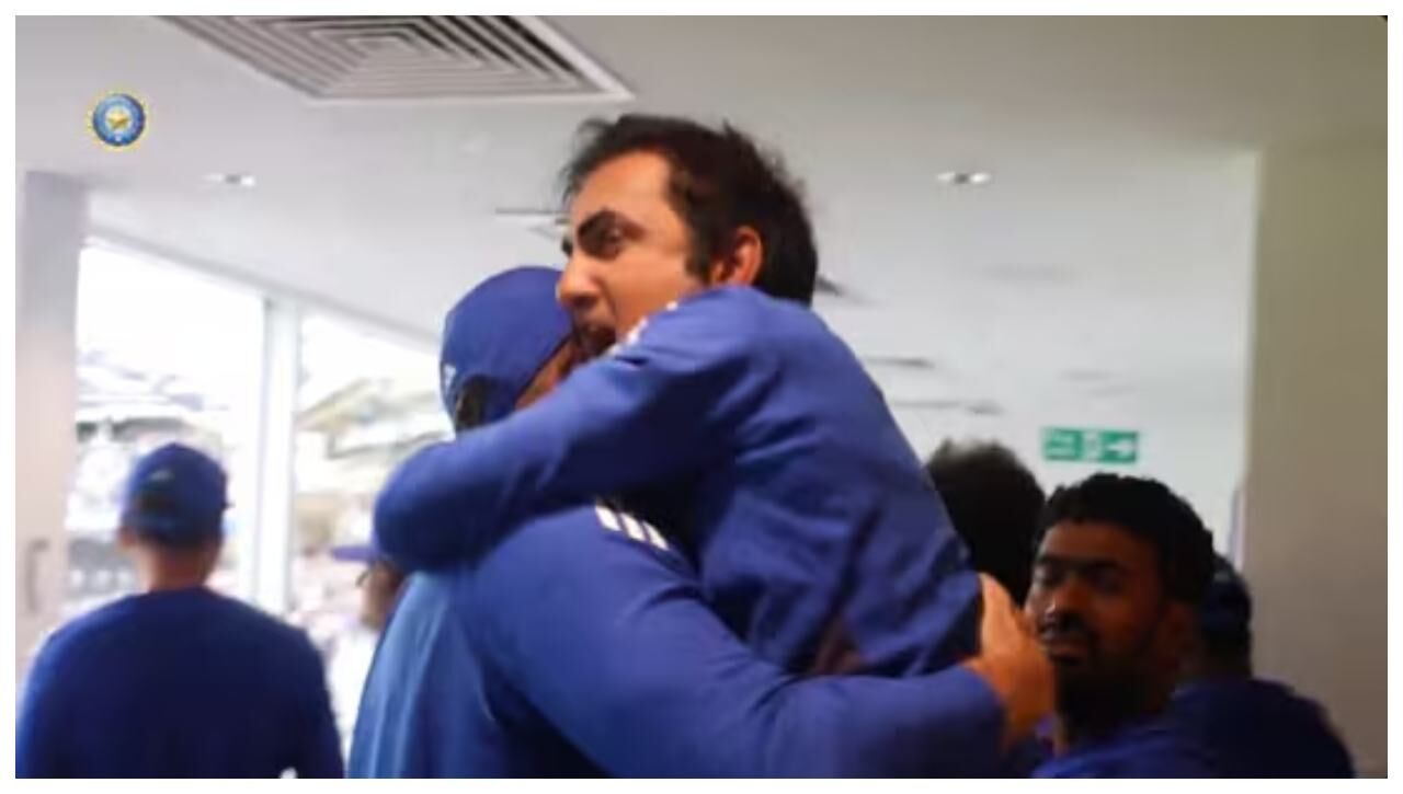 इस जीत के बाद अक्सर गंभीर रहने वाले कोच गौतम इमोशनल हो गए। वो अपनी भावनाओं पर काबू नहीं रख पाए। इसका एक वीडियो वायरल हो रहा, जिसमें गौतम ड्रेसिंग रूम में गोद में ही चढ़ गए।