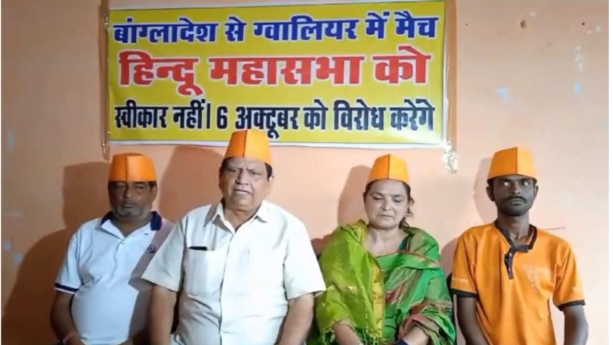 Hindu Mahasabha warning for india vs Bangladesh t20: भारत और बांग्लादेश के बीच टेस्ट सीरीज के बाद 3 टी20 खेले जाने हैं। इसका एक मुकाबला ग्वालियर में होना है। लेकिन इस मुकाबले पर संकट के बादल मंडरा रहे। हिंदू महासभा ने मैच को रद्द करने की मांग की है।