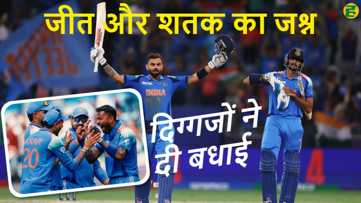 केंद्रीय खेल मंत्री मनसुख मंडाविया ने X पर लिखा, 'पाकिस्तान के खिलाफ़ शानदार जीत के लिए मेन इन ब्लू को हार्दिक बधाई। टीम ने क्या शानदार ऑलराउंड प्रदर्शन किया। शानदार पारी और सबसे तेज 14,000 वनडे रन बनाने वाले खिलाड़ी बनने के लिए विराट कोहली का विशेष उल्लेख। आगामी मैचों के लिए शुभकामनाएं।'
