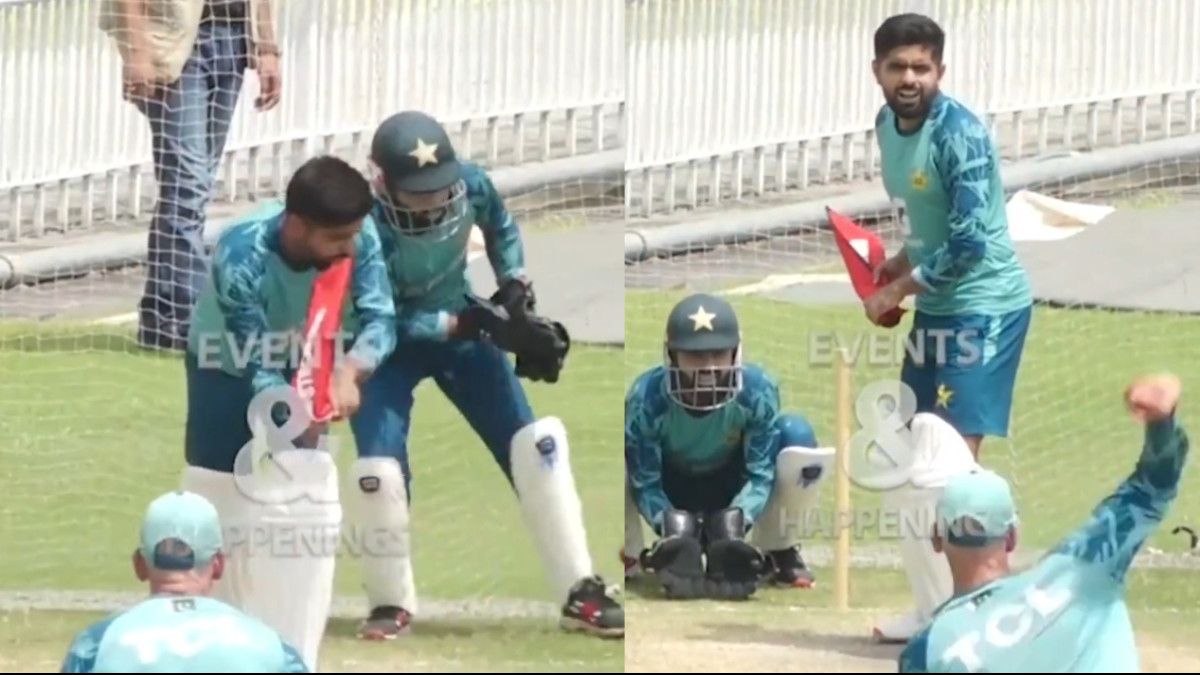 बाबर आजम का एक वीडियो सामने आया है, जिसमें वह बैट नहीं ब्लकि बैट के कवर से बैटिंग का अभ्यास कर रहे हैं। वीडियो में देखा जा सकता है कि खुद गैरी कस्टर्न नेट्स में उन्हें गेंदबाजी कर रहे हैं। विकेट के पीछे मोहम्मद रिजवान विकेटकीपिंग कर रहे हैं।