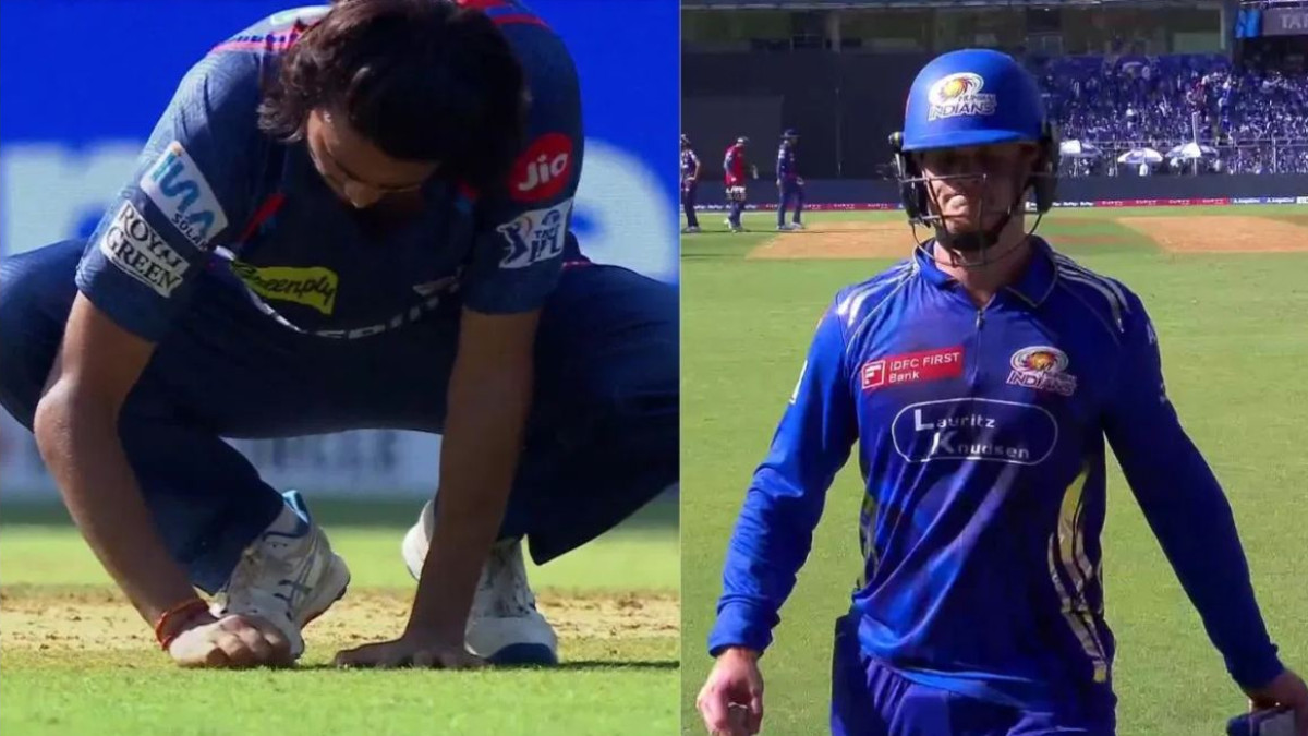 Digvesh Rathi signature celebration: मुंबई इंडियंस और लखनऊ सुपरजायंट्स के बीच रविवार को वानखेड़े स्टेडियम में खेले जा रहे मैच में मुंबई के ओपनर रयान रिकेल्टन ने अपनी तूफानी बल्लेबाजी से सबका दिल जीत लिया। दक्षिण अफ्रीकी बल्लेबाज ने शुरुआत से ही आक्रामक रुख अपनाया और लखनऊ के गेंदबाजों की जमकर धुनाई की।