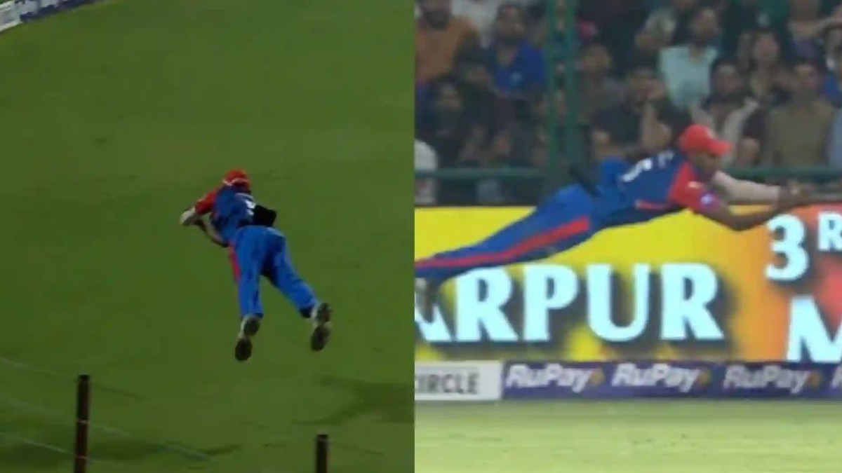 dushmanta chameera flying catch: दिल्ली कैपिटल्स और कोलकाता नाइट राइडर्स के बीच हुए मुकाबले में दिल्ली की तरफ से खेल रहे दुश्मंता चमीरा ने बाउंड्री पर अनुकूल रॉय का हवा में उड़कर कैच लपका।