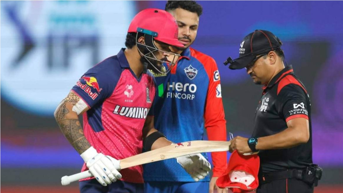 बीते 13 अप्रैल को राजस्थान रॉयल्स और रॉयल चैलेंजर्स बैंगलुरु के मैच में पहली बार अंपायर की बल्ले को गेज से गुजारने की तस्वीर सामने आई थी। अब ये IPL का नया नॉर्मल बन चुका है–हर बल्लेबाज़ को गेज़ से बल्ले की जांच करानी पड़ रही।