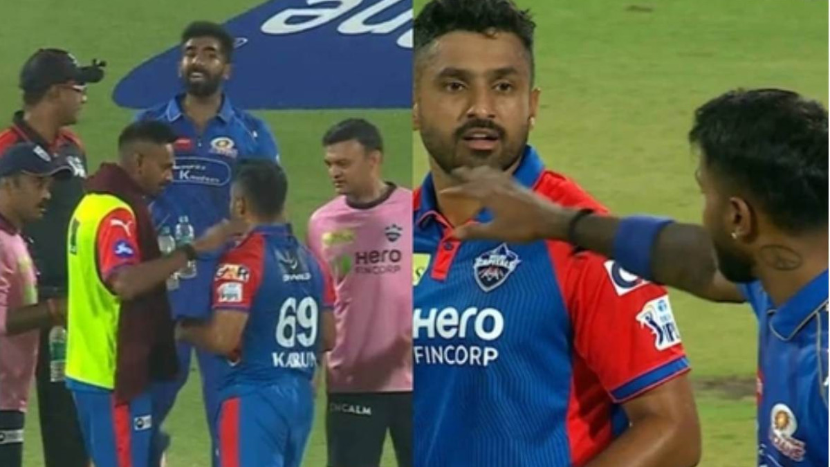 jasprit bumrah vs karun nair: मुंबई इंडियंस और दिल्ली कैपिटल्स के बीच हुए मुकाबले में करुण नायर और जसप्रीत बुमराह भिड़ गए। अपना अर्धशतक पूरा करने के दौरान करुण बुमराह से टकरा गए थे। इसके बाद दोनों में बहस हुई। इस दौरान रोहित शर्मा का रिएक्शन देखने लायक था।