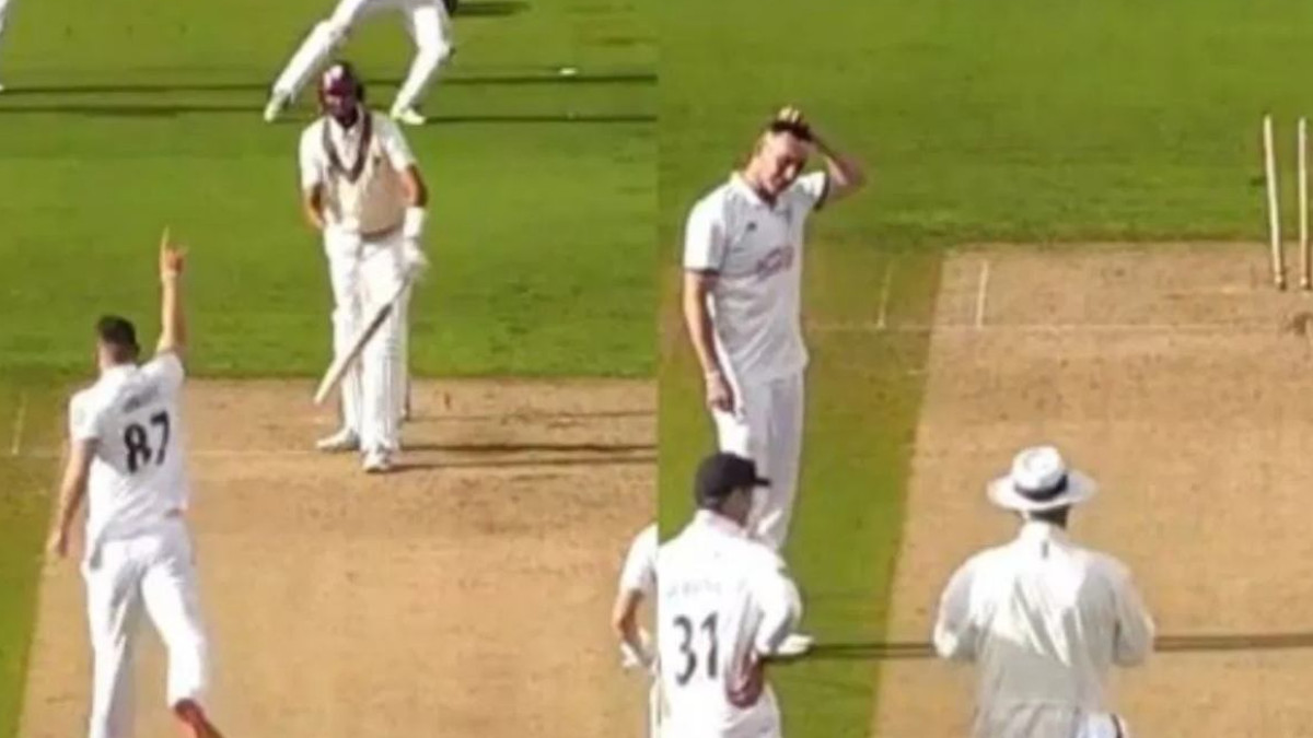 Shoaib Bashir Kyle Abbott viral video: इंग्लैंड की काउंटी चैंपियनशिप में मजेदार वाकया हुआ। समरसेट और हैंपशर के बीच हुए मुकाबले में काइल एबॉट ने शोएब बशीर को क्लीन बोल्ड कर दिया। इसके बावजूद अंपायर ने उन्हें आउट नहीं दिया। जानिए क्यों हुआ ऐसा।