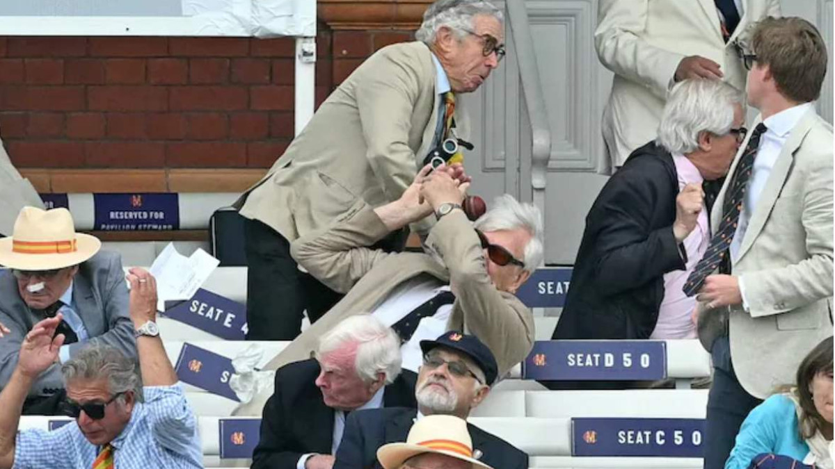 Eng vs SL lords test : इंग्लैंड और श्रीलंका के बीच लॉर्ड्स में खेले जा रहे दूसरे टेस्ट के दौरान कैच पकड़ने के चक्कर में स्टैंड्स में बैठे एमसीसी मेंबर के सिर पर गेंद लग गई।