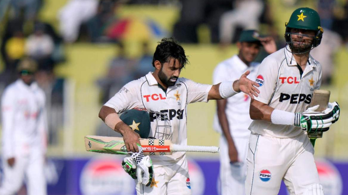इसके बाद रिजवान और शकील के बीच विशाल साझेदारी हुई और दोनों ने पांचवें विकेट के लिए 240 रन जोड़कर पाकिस्तान को मजबूत स्थिति में ला दिया। बांग्लादेश के लिए हसन महमूद (2/70) और शोरफुल इस्लाम (2/77) ने दो-दो विकेट लिए, जबकि मेहदी हसन मिराज (1/80) और शाकिब अल हसन (1/100) ने एक-एक विकेट लिया।