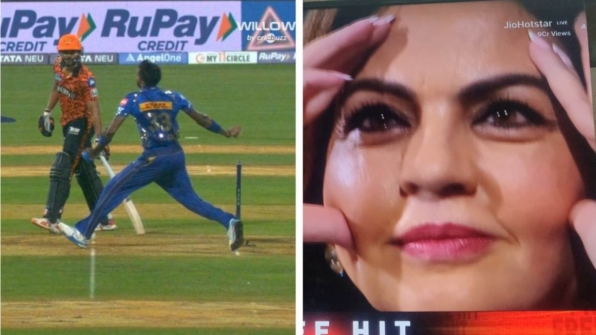 हेड को लगा कि वो आउट हो गए हैं और हार्दिक के साथ ही मुंबई इंडियंस के बाकी खिलाड़ियों ने भी हेड के आउट होने का जश्न मनाना शुरू कर दिया। लेकिन तभी बजा नो-बॉल का सायरन और अंपायर ने भी संकेत दे दिया- हार्दिक की ये गेंद ओवरस्टेप थी। इस पूरे ड्रामे के दौरान स्टैंड्स में बैठे नीता अंबानी और उनके बेटे आकाश अंबानी का रिएक्शन कैमरे में कैद हो गया।