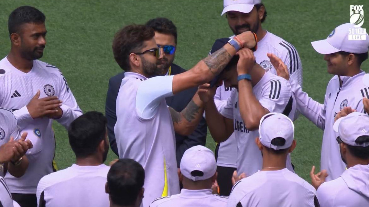 Virat Kohli presenting debut cap to Nitish Kumar Reddy.