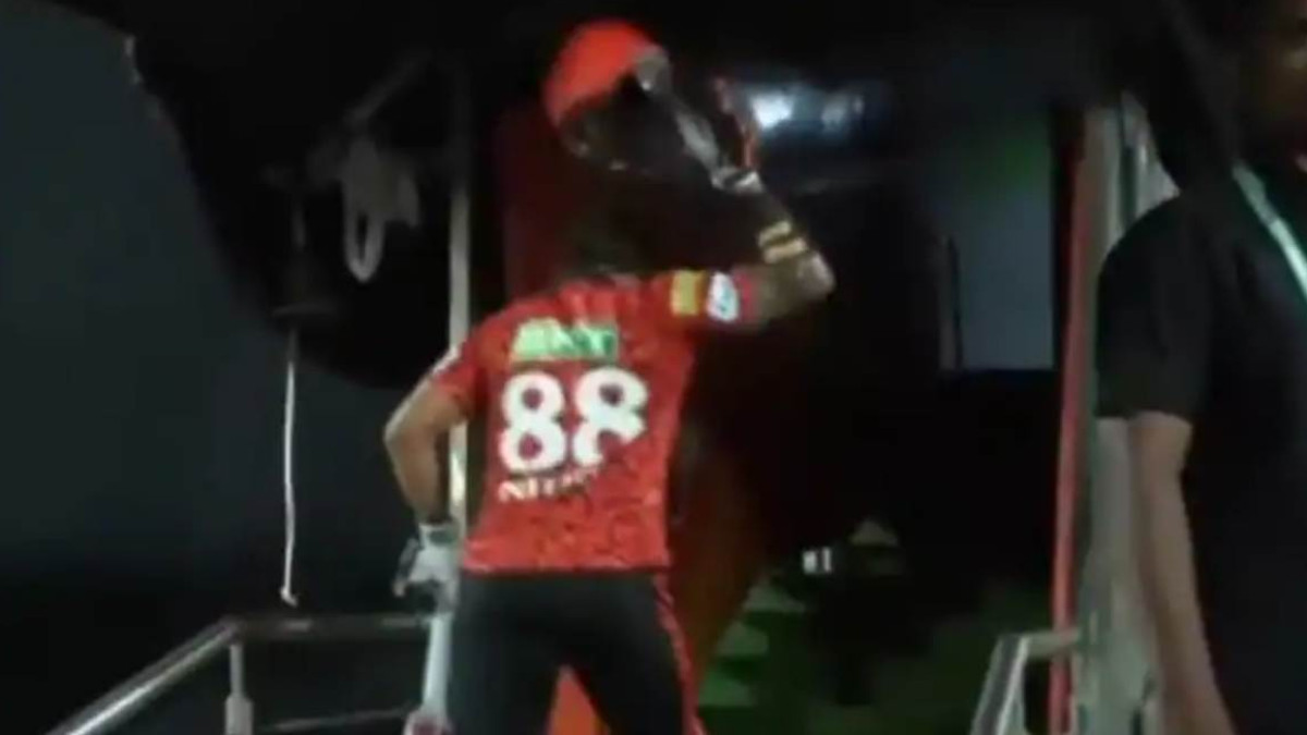 Nitish Kumar Reddy video: सनराइजर्स हैदराबाद के बैटर नीतीश रेड्डी ने लखनऊ सुपर जायंट्स के खिलाफ आउट होने के बाद ड्रेसिंग रूम में घुसने से पहले अपना हेलमेट फेंका। इसका वीडियो वायरल हो रहा।