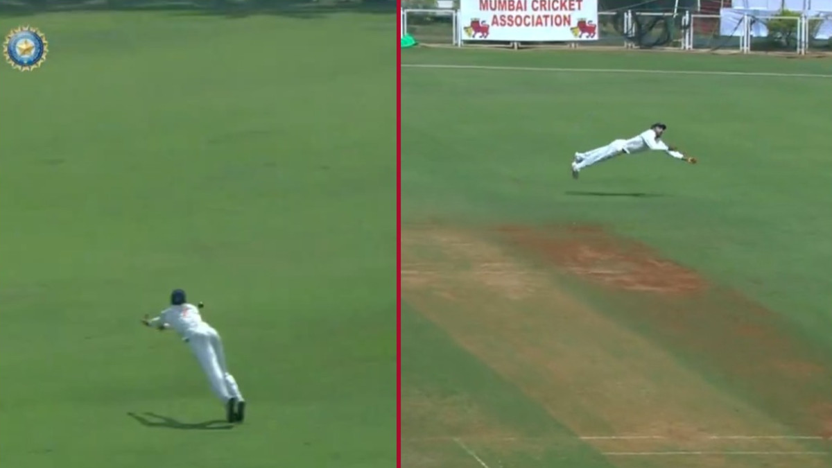Mumbai vs J&K: रणजी ट्रॉफी में मुंबई और जम्मू-कश्मीर के बीच हुए मुकाबले में 40 साल के पारस डोगरा ने अपनी बायीं तरफ डाइव लगाते हुए शानदार कैच लपका।