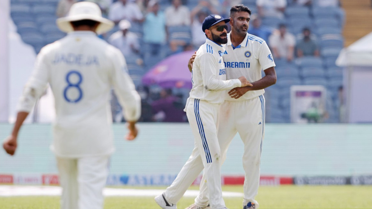 अश्विन को पुणे टेस्ट के पहले दिन लायन के 530 विकेट से आगे निकलने के लिए 3 और विकेट चाहिए थे। उन्होंने पहला विकेट न्यूजीलैंड के कप्तान टॉम लैथम को आउट कर हासिल किया। इसके बाद उन्होंने विल यंग को विकेट के पीछे ऋषभ पंत के हाथों कैच आउट कराया। अश्विन को तीसरी सफलता डेवोन कॉनवे के रूप में मिली। कॉनवे का कैच भी पंत ने लपका। कॉनवे ने 76 रन की पारी खेली।