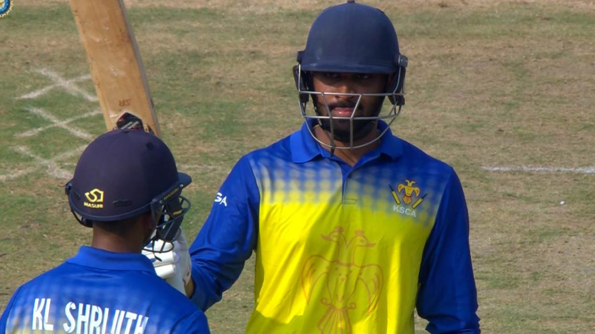 Vijay Hazare Trophy Final: विजय हजारे ट्रॉफी के फाइनल में कर्नाटक ने विदर्भ को 349 रन.रन का लक्ष्य दिया। वड़ोदरा में हो रहे फाइनल में विदर्भ ने टॉस जीतकर गेंदबाजी चुनी थी। कर्नाटक की शुरुआत अच्छी नहीं रही थी। 67 रन के स्कोर पर कर्नाटक के 3 विकेट गिर गए थे। कप्तान मयंक अग्रवाल 32, देवदत्त पडिक्कल 8 और केवी अनिश 23 रन बनाकर आउट हो गए थे।