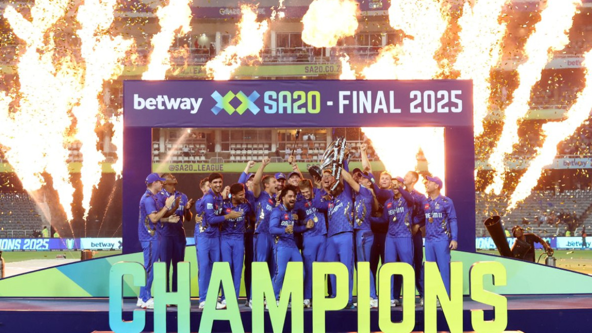 MICT, जिसने पहले दो सीजन में टूर्नामेंट में सबसे खराब प्रदर्शन किया था, इस बार चैंपियन बनकर उभरी। राशिद खान की कप्तानी में टीम ने बेहतरीन संतुलन दिखाया और फाइनल में डिफेंडिंग चैंपियन SEC को एकतरफा हराकर SA20 ट्रॉफी अपने नाम की। एमआई केपटाउन के खिलाड़ियों ने जीत के बाद वांडरर्स स्टेडियम में पटाखों और झिलमिलाती रोशनी के बीच जश्न मनाया। अब मुंबई इंडियंस की फ्रेंचाइजी ने हर उस टी20 लीग में खिताब जीत लिया है, जिसमें वह खेल रही।