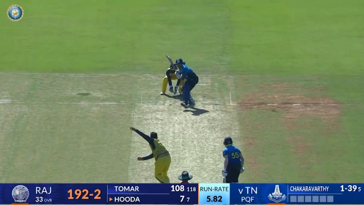 बुधवार को प्री-क्वॉर्टरफाइनल मुकाबले में राजस्थान ने तमिलनाडू को 19 रन से हराया। तमिलनाडु ने टॉस जीतकर गेंदबाजी करने का फैसला किया। राजस्थान ने 47.3 ओवर बल्लेबाजी करते हुए तमिलनाडू को 268 रन का लक्ष्य दिया। राजस्थान की तरफ से अभिजीत तोमर ने शतक ठोका। उन्होंने 111 रनों की पारी खेली। इसमें 12 चौके और 4 छक्के लगाए।