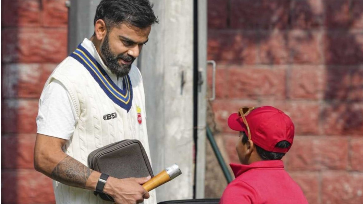 Virat Kohli video: विराट कोहली 2012 के बाद पहली बार रणजी ट्रॉफी खेलेंगे। वो दिल्ली टीम के साथ अभ्यास कर रहे हैं और रेलवे के खिलाफ अगले मुकाबले में उतरेंगे। कोहली का दिल्ली टीम के साथ प्रैक्टिस सेशन का एक वीडियो वाय़रल हो रहा, जिसमें एक नन्हा फैन उनसे पूछता है कि इंडियन क्रिकेटर बनने के लिए क्या करना होगा। इस पर कोहली ने जो जवाब दिया, उसका वीडियो वायरल हो रहा।