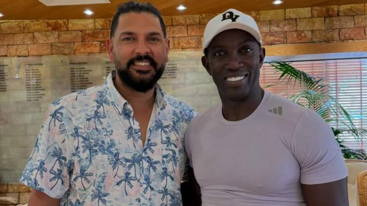 Yuvraj singh meet Dwight Yorke: क्रिकेट को अलविदा कहने के बाद सिक्सर किंग युवराज सिंह गोल्फ खेलना पसंद करते हैं। वह अक्सर गोल्फ खेलते नजर आते हैं। हाल ही में युवराज सिंह फुटबाल के दिग्गज ड्वाइट योर्क के साथ नजर आए। युवराज ने अपने इंस्टाग्राम अकाउंट पर योर्क के साथ तस्वीर शेयर कीं। इस दौरान सिक्सर किंग काफी खुश नजर आए।