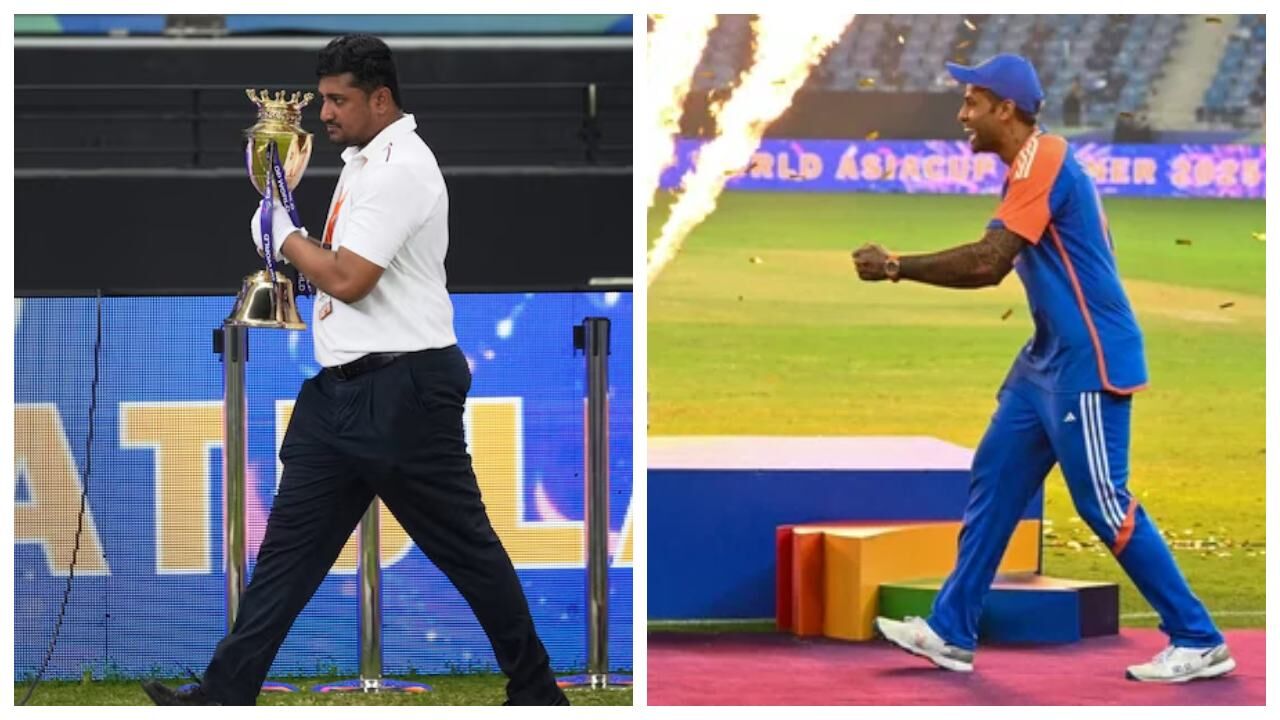 Asia cup trophy row: एशिया कप 2025 खत्म हो चुका है लेकिन ट्रॉफी को लेकर विवाद थमता नहीं दिख रहा। भारत लौटने पर सूर्यकुमार यादव ने बताया कि फाइनल के दिन क्या-क्या हुआ था और कैसे एसीसी चेयरमैन मोहसिन नकवी ट्रॉफी लेकर चले गए।