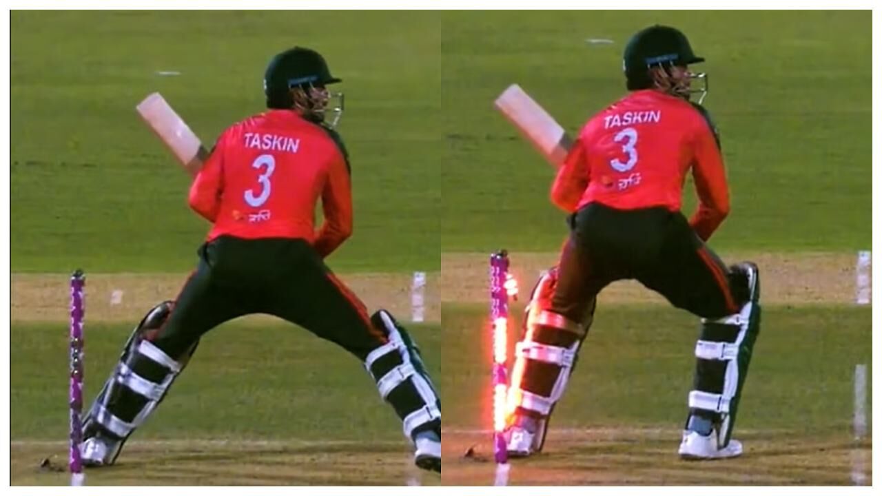 छक्का मारने के दौरान तस्कीन हिटविकेट