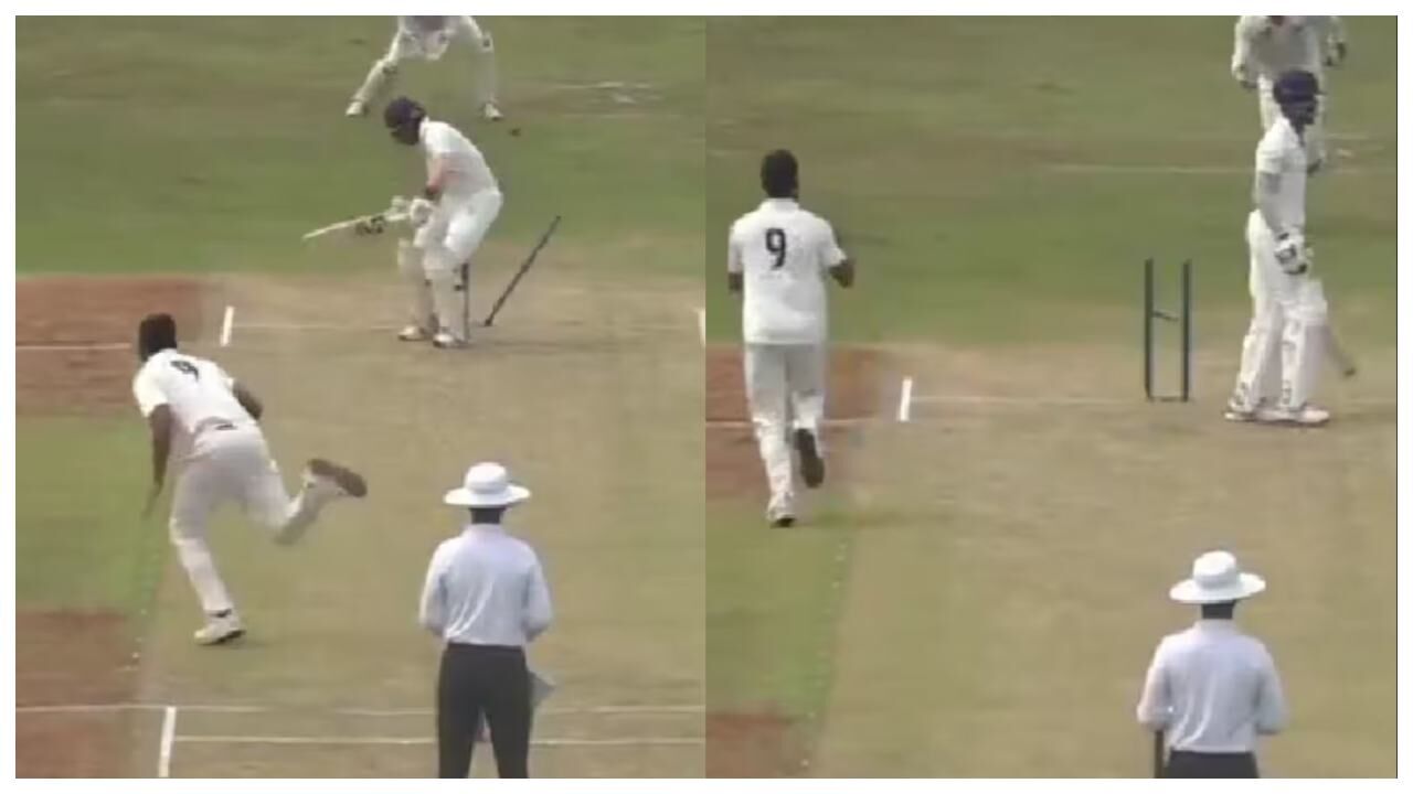 उमरान मलिक ने बुची बाबू टूर्नामेंट में 2 गेंद में 2 बल्लेबाजों को बोल्ड किया।