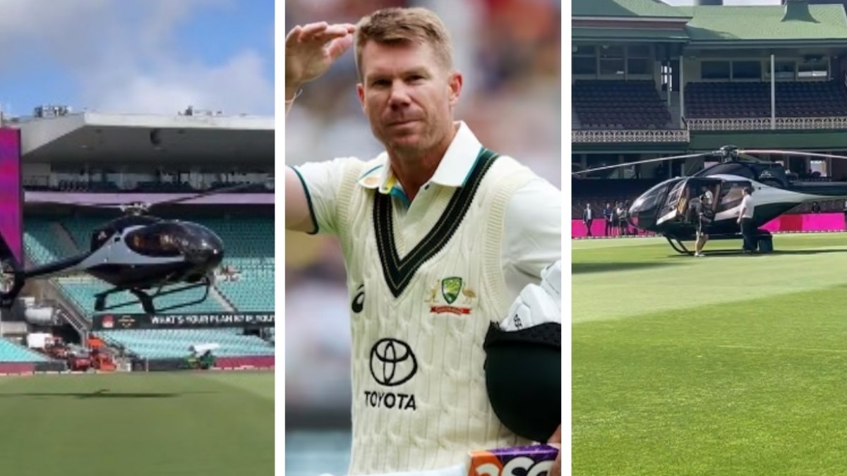 डेविड वॉर्नर हेलिकॉप्टर पर सवार होकर सीधे सिडनी क्रिकेट ग्राउंड में उतरे।
