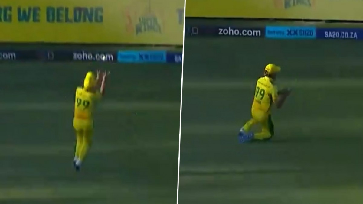 इसके बाद पार्ल रॉयल्स की पारी के 11वें ओवर में भी 44 साल के इमरान ने अपनी फिटनेस का नमूना दिखाया, जब उन्होंने बाउंड्री लाइन पर डेन विलास का शानदार कैच लपका। डेन ने 11वें ओवर की तीसरी गेंद पर हवाई शॉट खेला। ऐसा लगा कि गेंद सीधा बाउंड्री के पार जाकर गिरेगी। लेकिन, गेंद और बाउंड्री के बीच इमरान ताहिर आ गए। उन्होंने गेंद के बाउंड्री के पार जाने से पहले ही उसे लपक लिया। इसका वीडियो वायरल हो रहा।