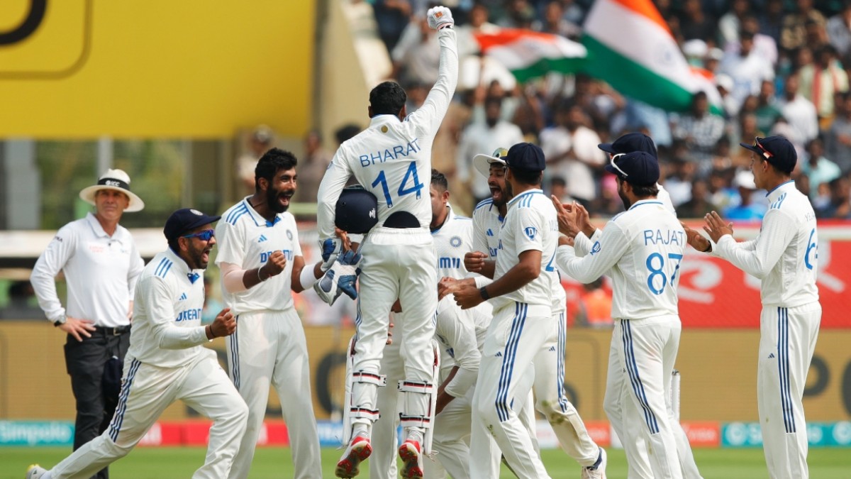 भारतीय तेज गेंदबाज जसप्रीत बुमराह ने टॉम हार्टले को बोल्ड कर जीत भारत की झोली में डाल दी। उन्होंने 47 गेंदों पर 36 रन बनाए।