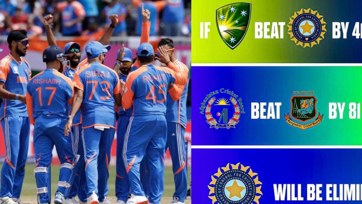 🚨If Australia beat India by 41 runs and Afghanistan beat Bangladesh by 81 runs, India will be eliminated from the T20 World Cup 2024. pic.twitter.com/fF7g5AdywP