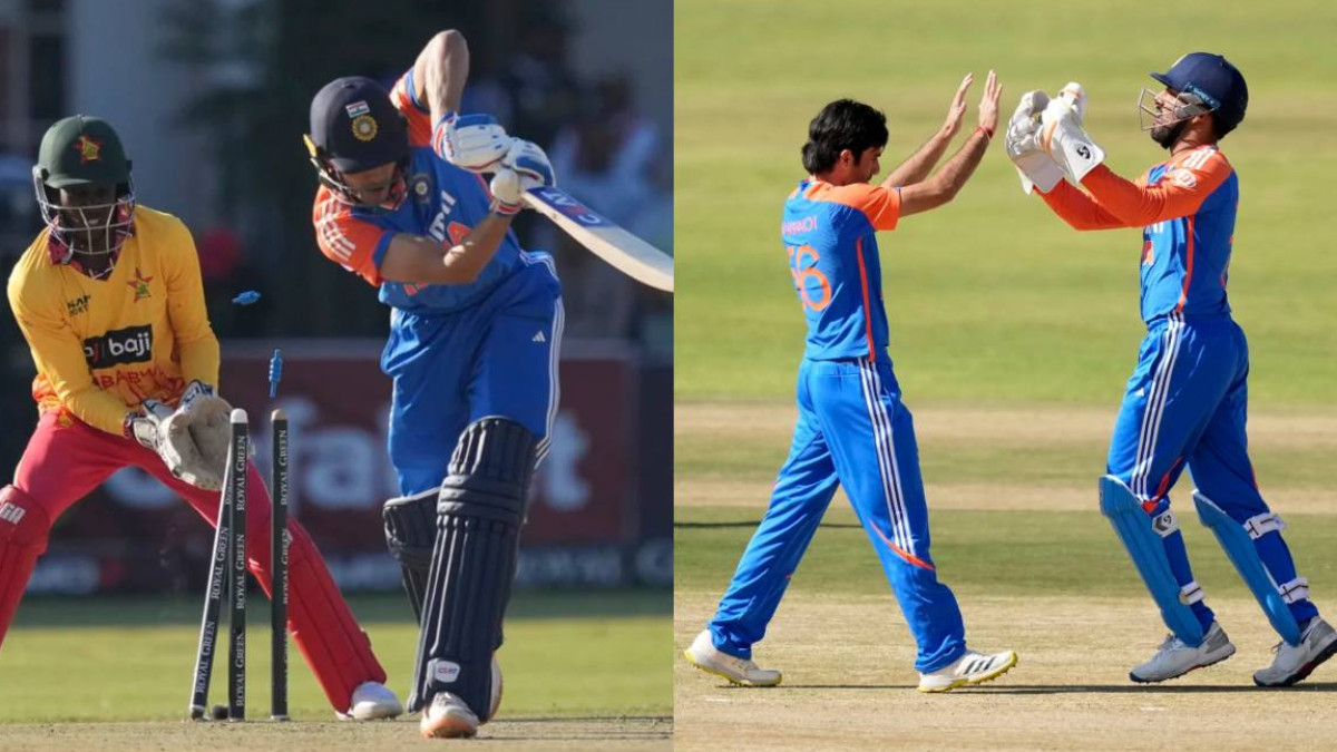 आईपीएल 2024 में जलवा बिखेरने वाले अभिषेक शर्मा, ऋतुराज गायकवाड़ और रियान पराग अपना विकेट थ्रो करते हुए पवेलियन चले गए। जिम्बॉब्वे के गेंदबाजों ने पहले ओवर से टीम इंडिया की बल्लेबाजी लाइनअप पर शिकंजा कसना शुरू किया, जिसे आखिर तक जारी रखा। 5 बल्लेबाज दहाई का आंकड़ा तक नहीं छू पाए। अभिषेक शर्मा और रिंकू सिंह को खाता भी नहीं खोल पाए।