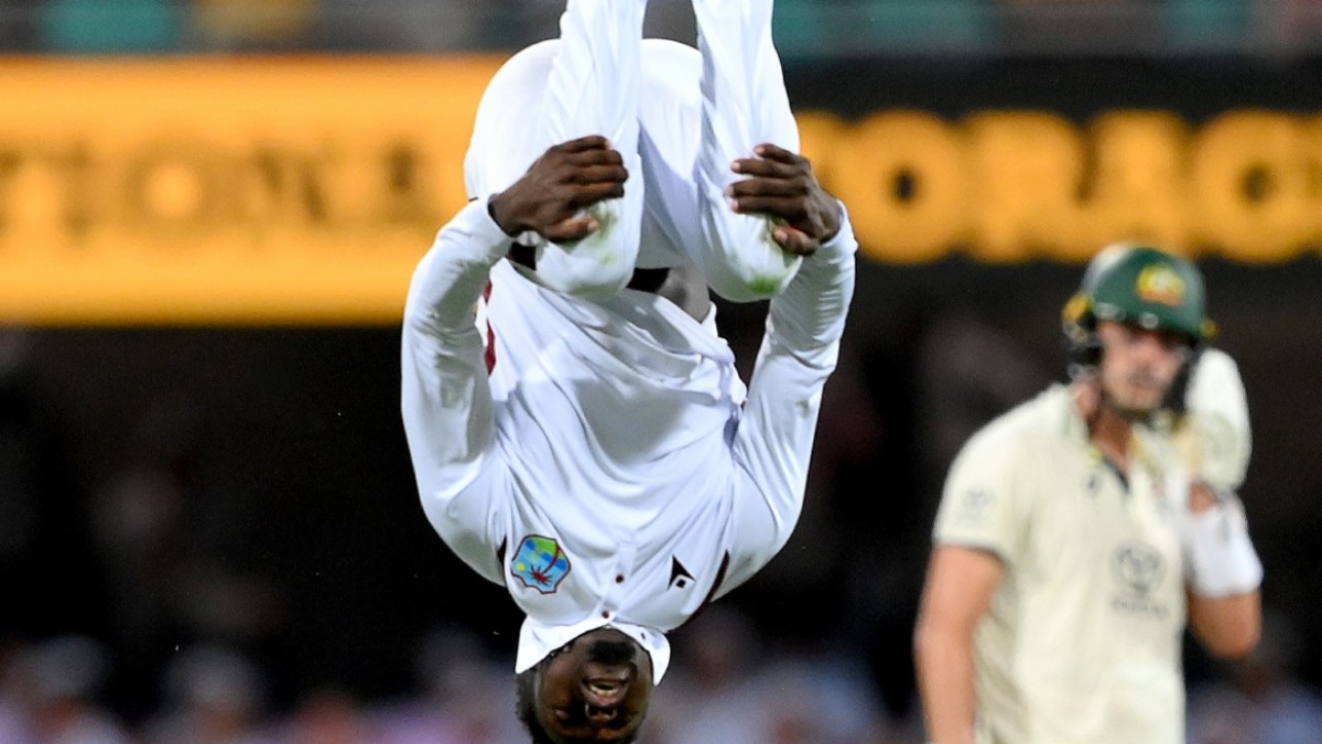 Kevin sinclair cartwheel Celebration: केविन सिनक्लेयर ने ऑस्ट्रेलिया के खिलाफ ब्रिसबेन टेस्ट में पहला विकेट हासिल करने के बाद मैदान पर कलाबाजी दिखाकर जश्न मनाया। इसका वीडियो वायरल हो रहा।