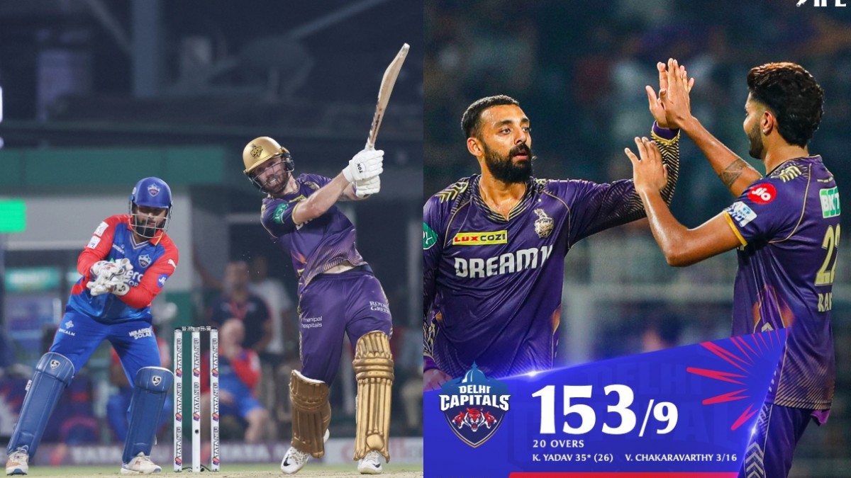 KKR vs DC Match Report: आईपीएल के 47वें मैच को कोलकाता नाइट राइडर्स ने जीत लिया। कोलकाता ने घर में दिल्ली कैपिटल्स 7 विकेट से हार दिया। दिल्ली ने टॉस जीतकर बैटिंग चुनी। कोलकाता को 153 रन का लक्ष्य दिया। इस छोटे टारगेट को कोलकाता ने 3 विकेट खोकर हासिल कर लिया। दिल्ली की तरफ से कोई बल्लेबाज अर्धशतक नहीं लगा पाया। वहीं, कोलकाता की तरफ से वैभव अरोरा ने घातक गेंदबाजी की। वरुण चक्रवर्ती ने 3, वैभव अरोरा और हर्षित राणा ने 2-2 विकेट, सुनील नरेन और मिचेल स्टॉर्क को एक-एक विकेट मिला।